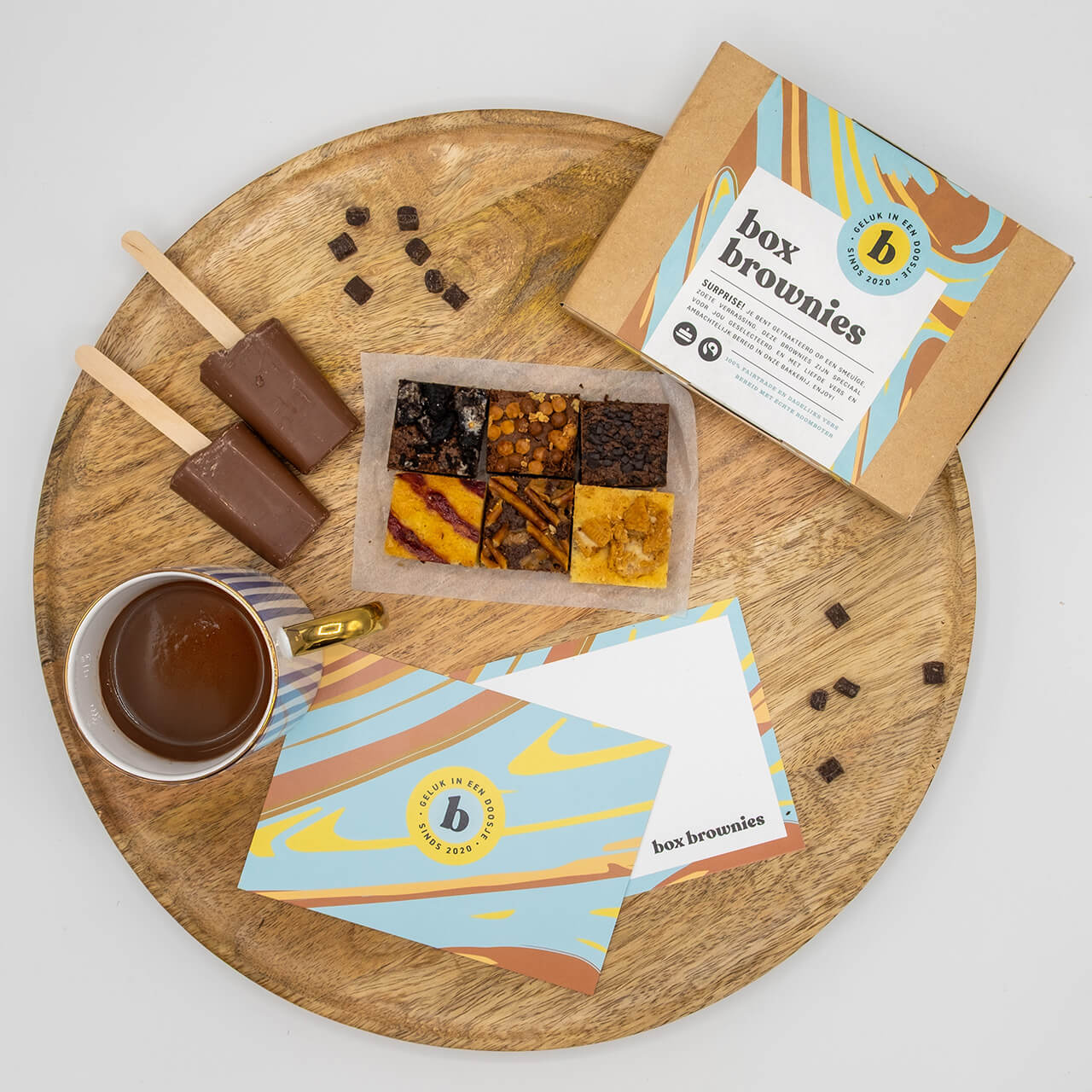 Bij de levering geven wij in de verpakking het advies mee om de brownies eerst in de koelkast te bewaren voor stevige brownies en op kamertemperatuur voor zachte brownies.